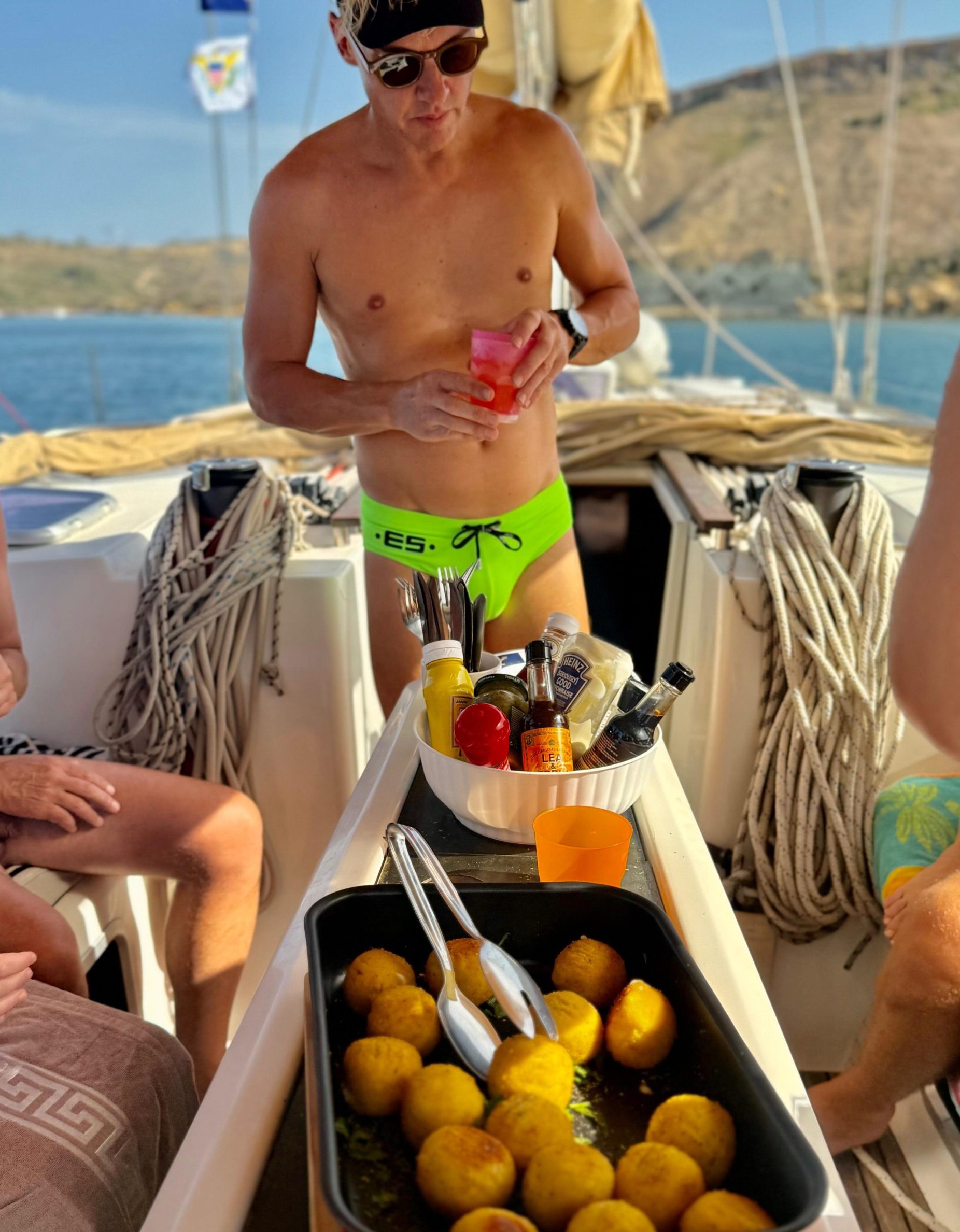 Each day we set off for another beach, village, or hotspot for nudism. Enjoy a filling breakfast and lunch on deck, and dinner either on the boat or in a village for some local cuisine. Enjoying a cocktail with the breeze and sun caressing our naked selves, we then drop anchor in a quiet cove or moor up in a village to go explore. Will it be a cruising spot, a nudist beach, or a hike that inspires us today, or is it a chill-on-deck kind of day? Tomorrow brings more adventure, so we head below deck to get to know each other a bit better.